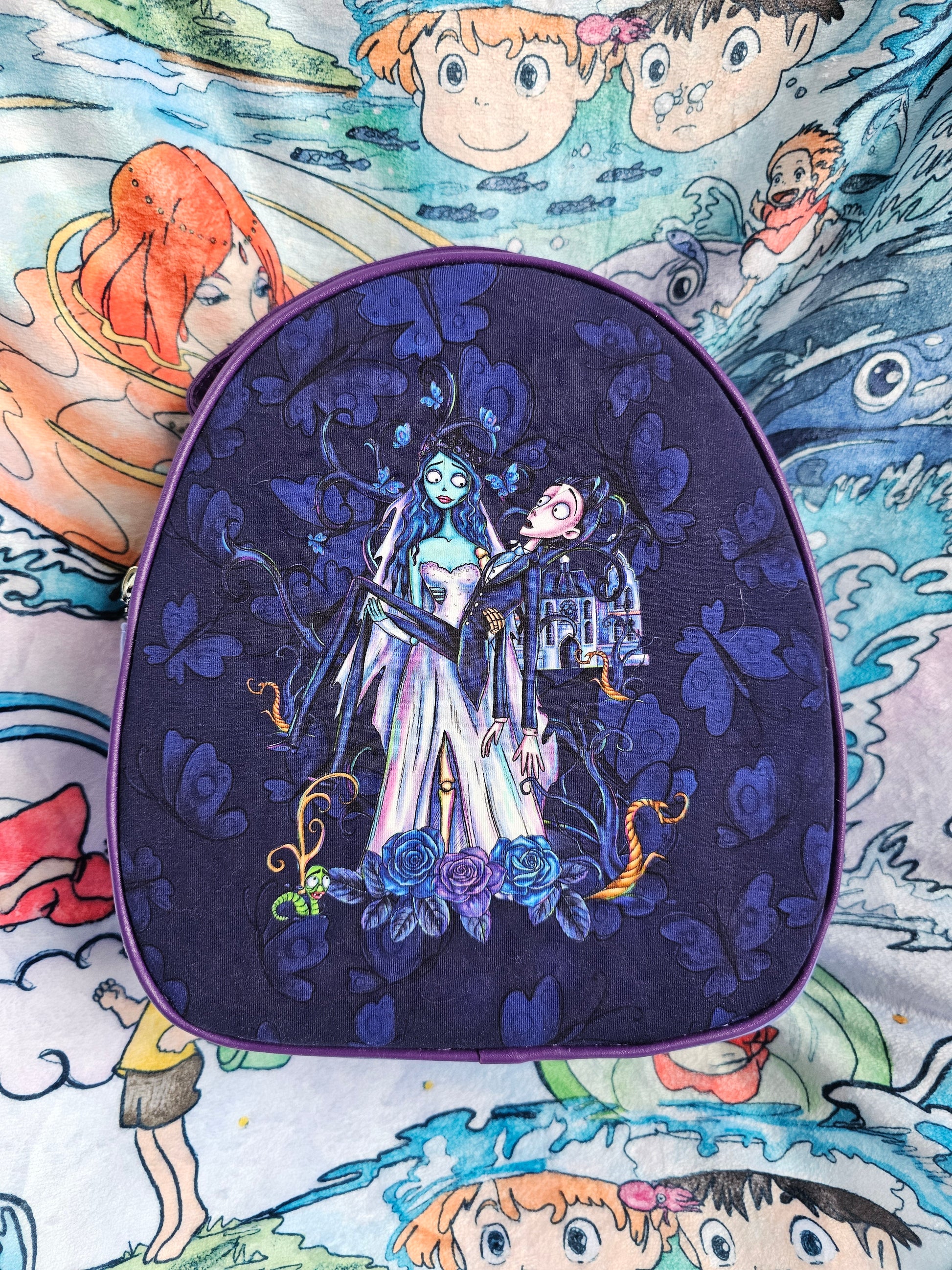 Custom fabric undead bride mini backpack/crossbody bag
