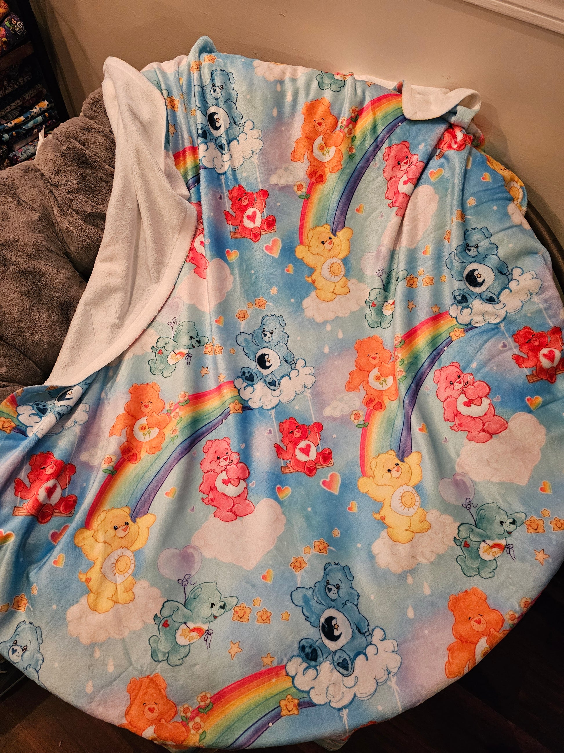 The sublimation process causes the blankets to be compressed, so please wash to fluff