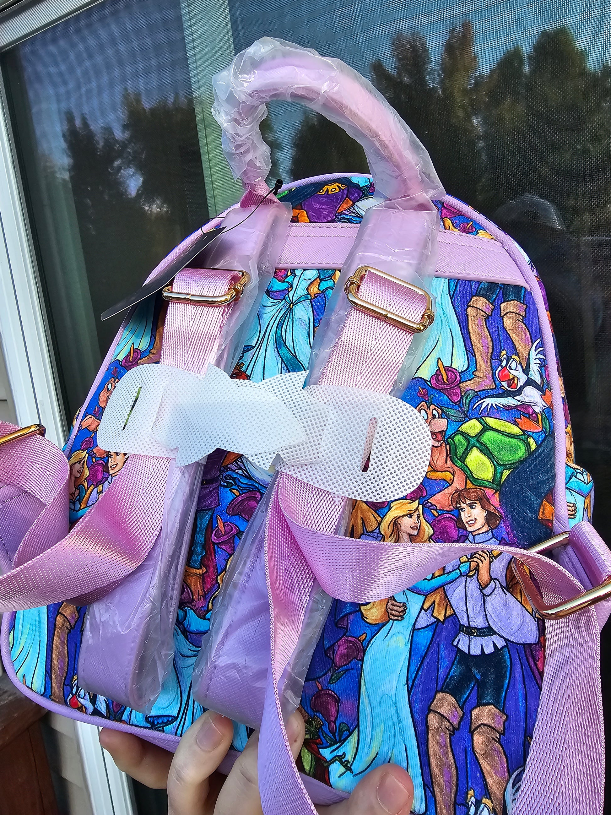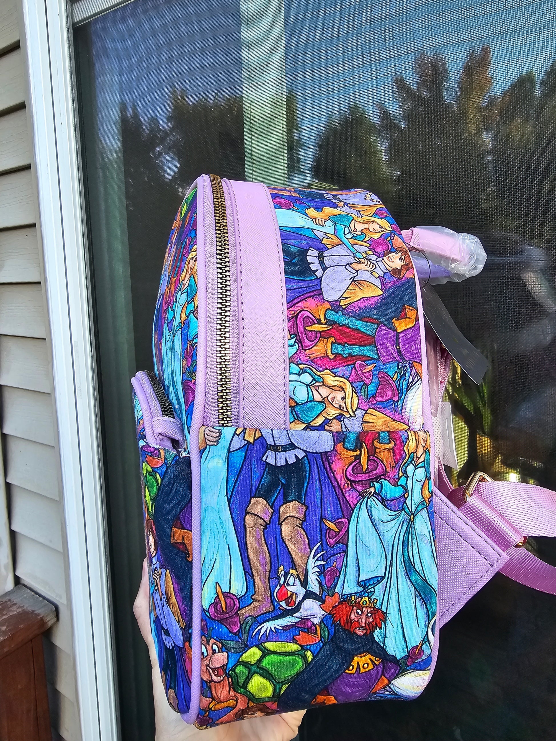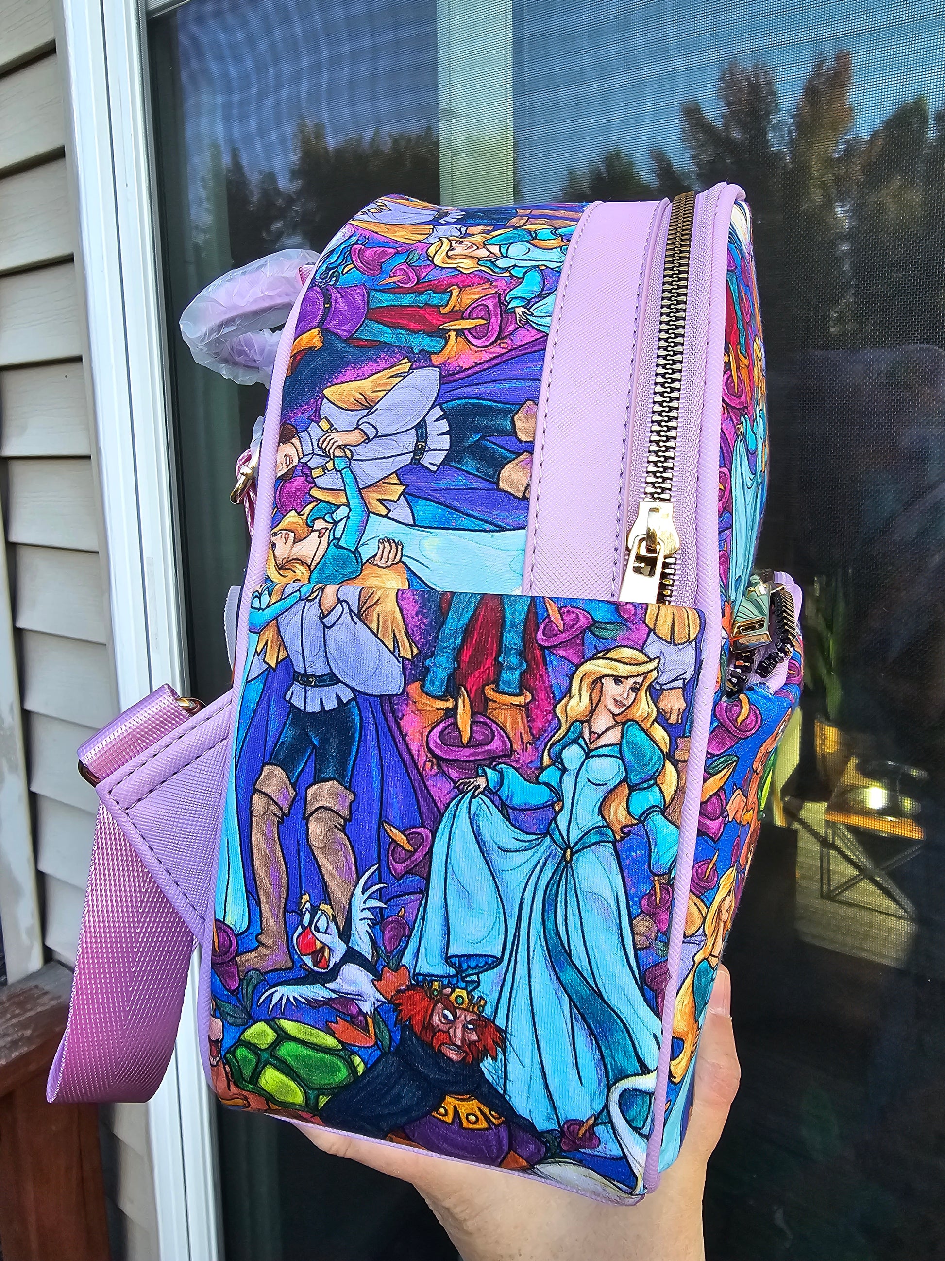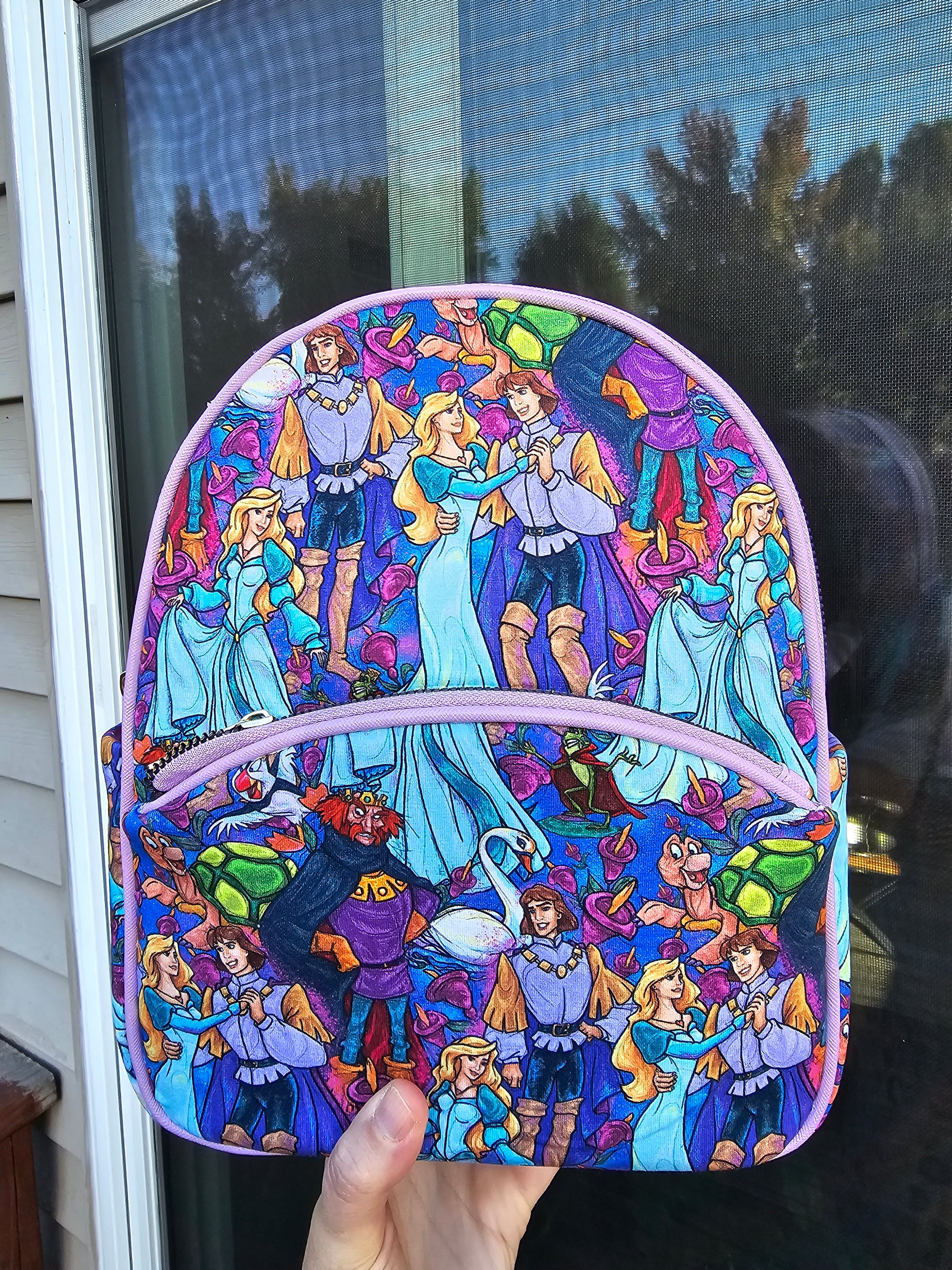 Custom fabric has been used to change the outside of the mini backpack. Please note, this is not LF.