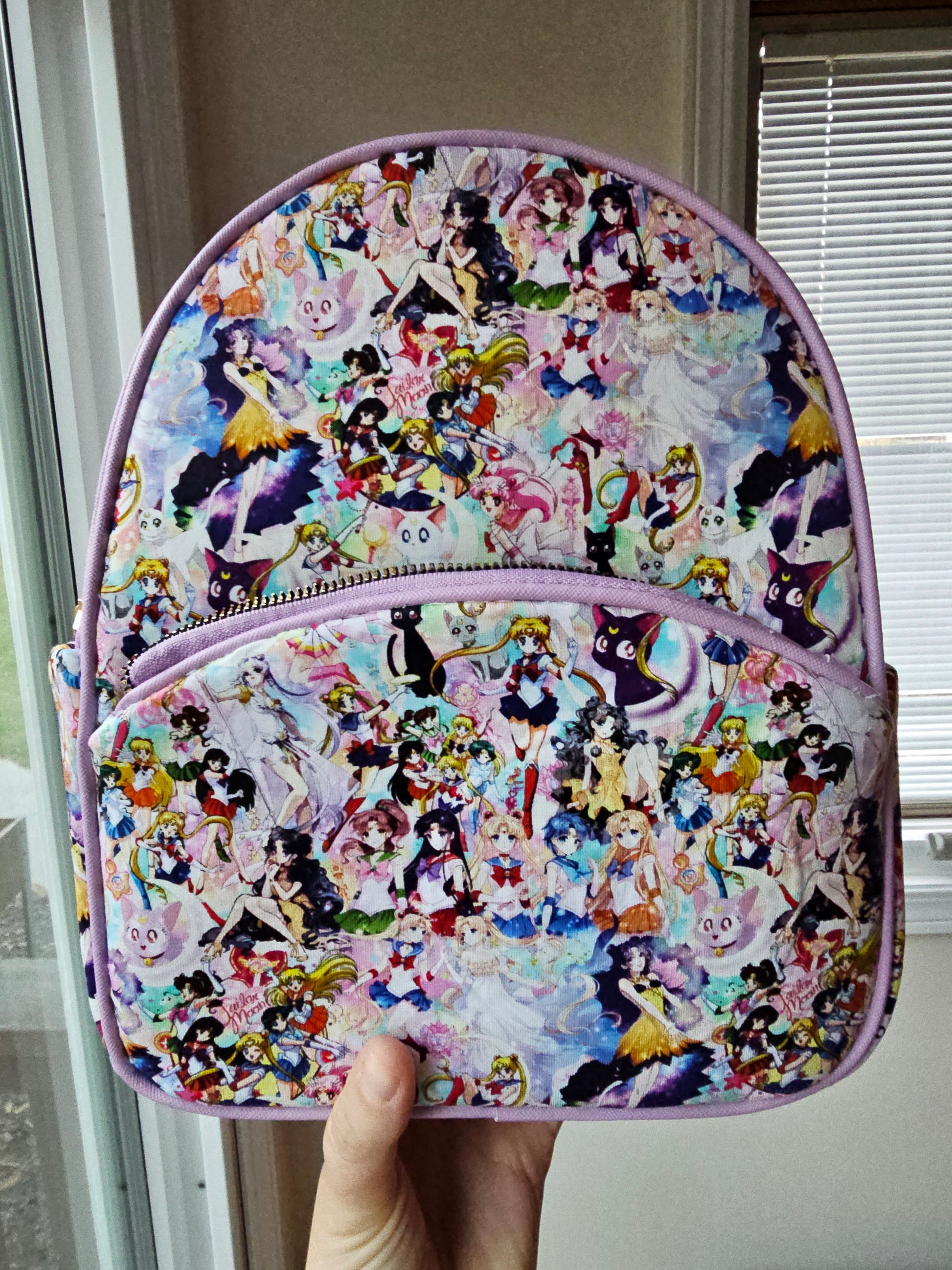 Custom fabric has been used to change the outside of the mini backpack. This is not LF, but B-world.