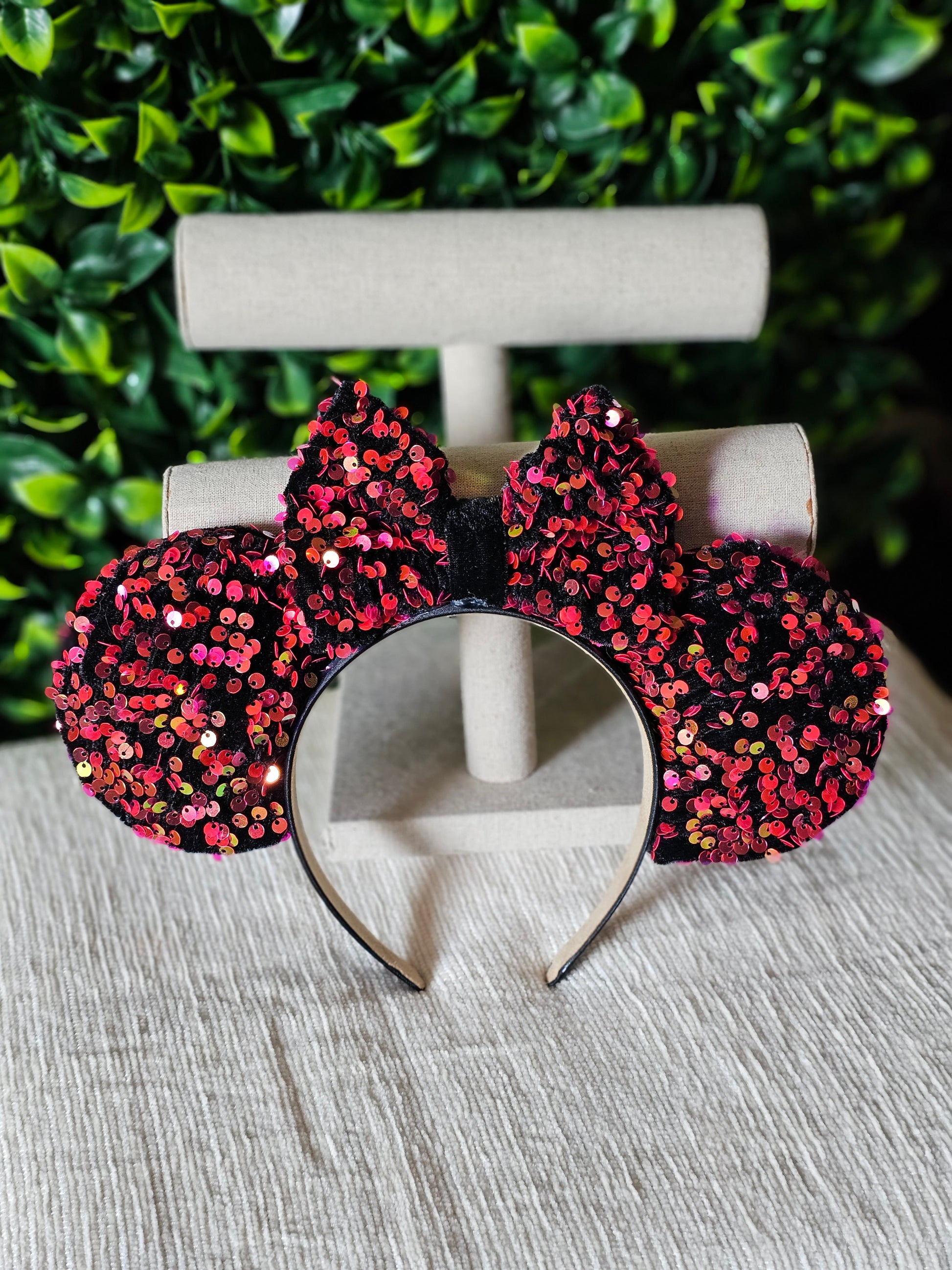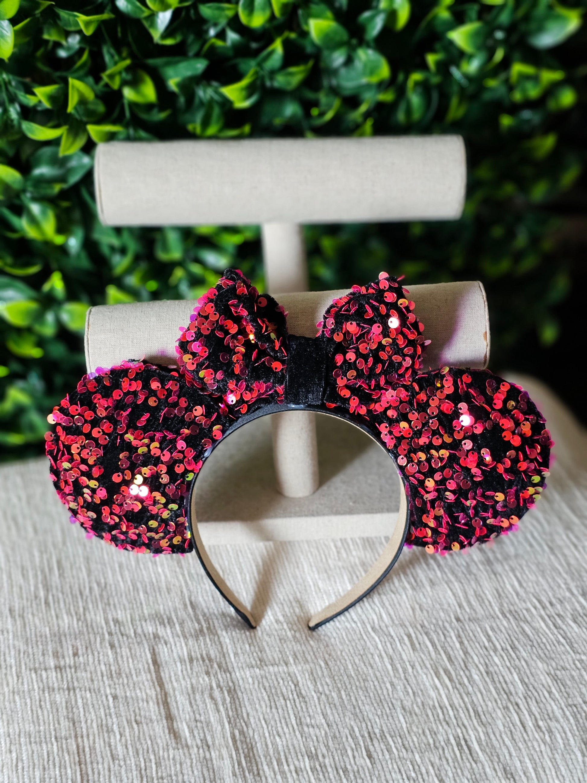 Pink iridescent sequins ear headband