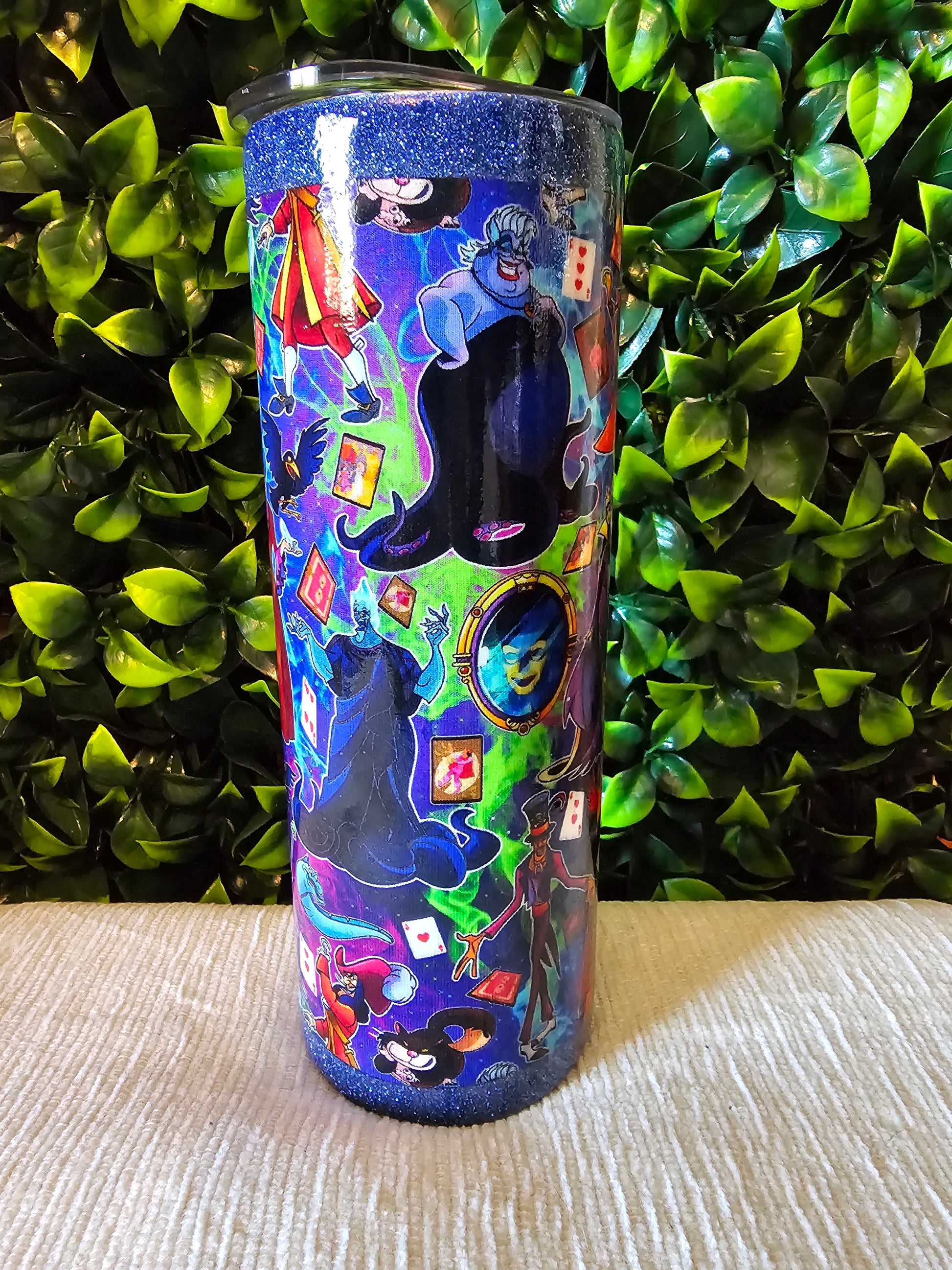 20 oz skinny stainless tumbler. Made with custom fabric and sealed with non epoxy, non toxic coating. Includes lid and straw.