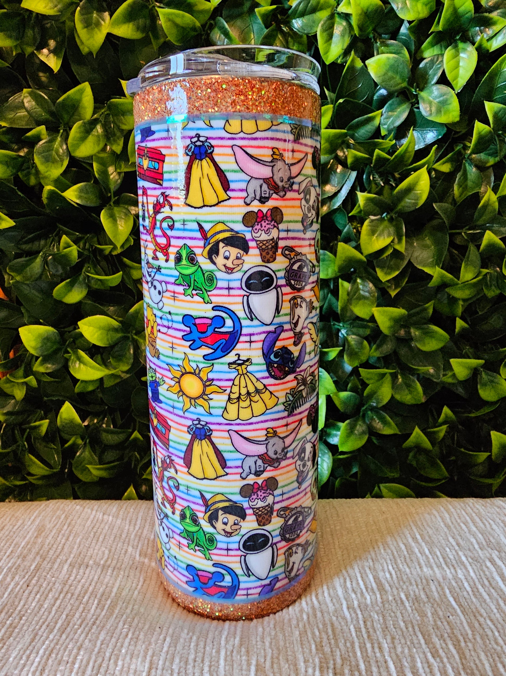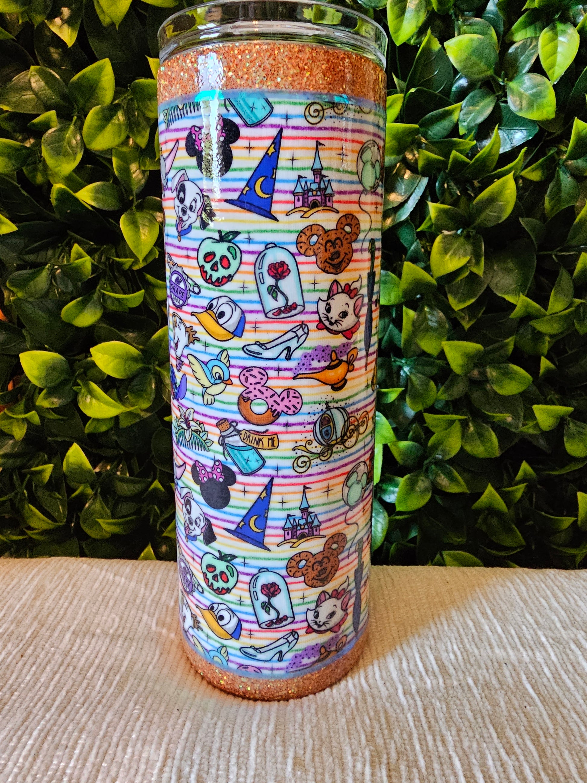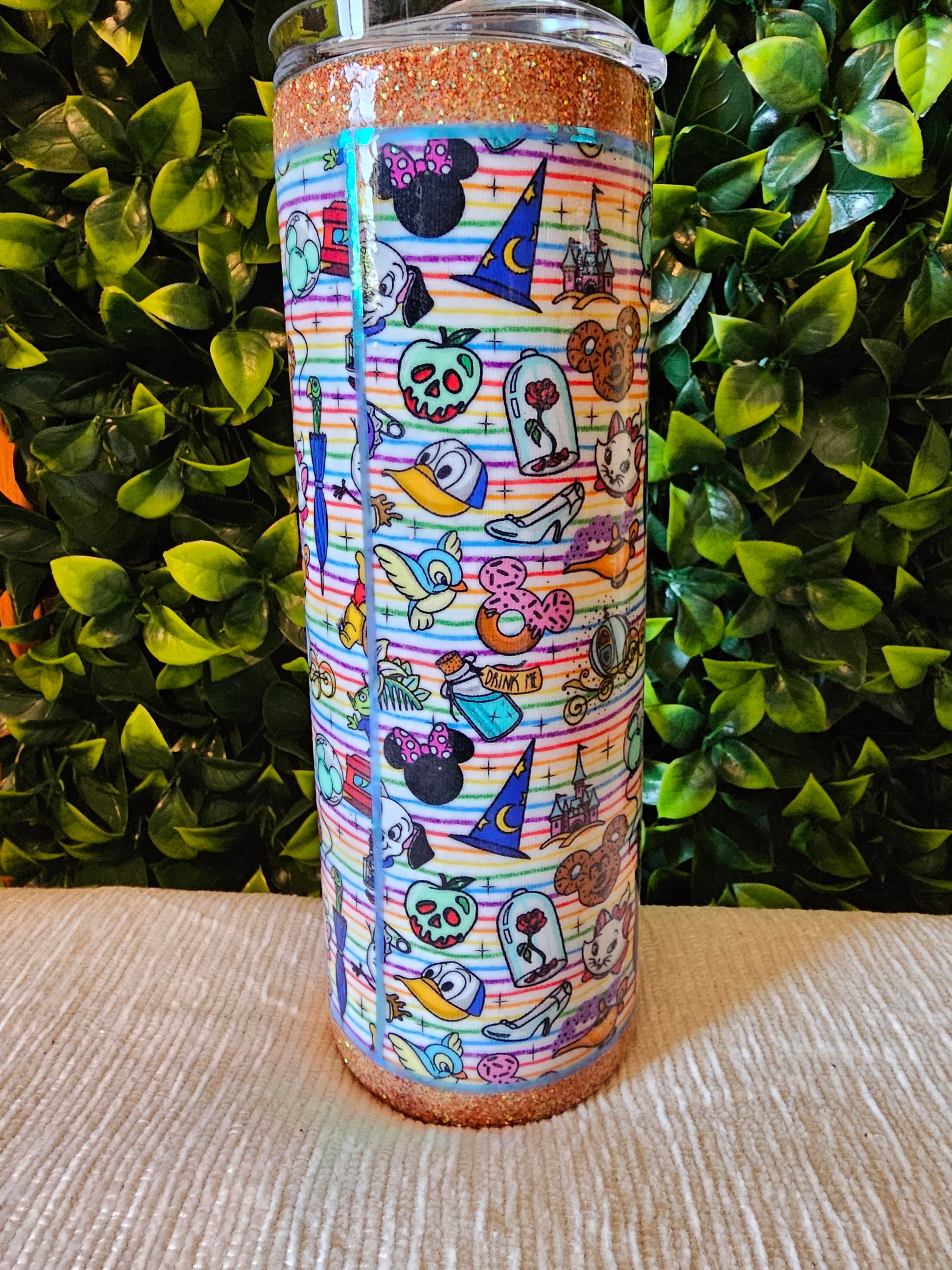 20 oz skinny stainless tumbler. Made with custom fabric and sealed with non epoxy, non toxic coating. Includes lid and straw.